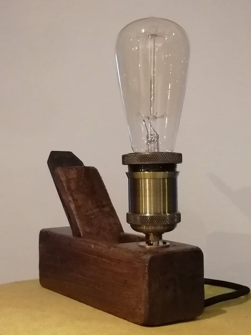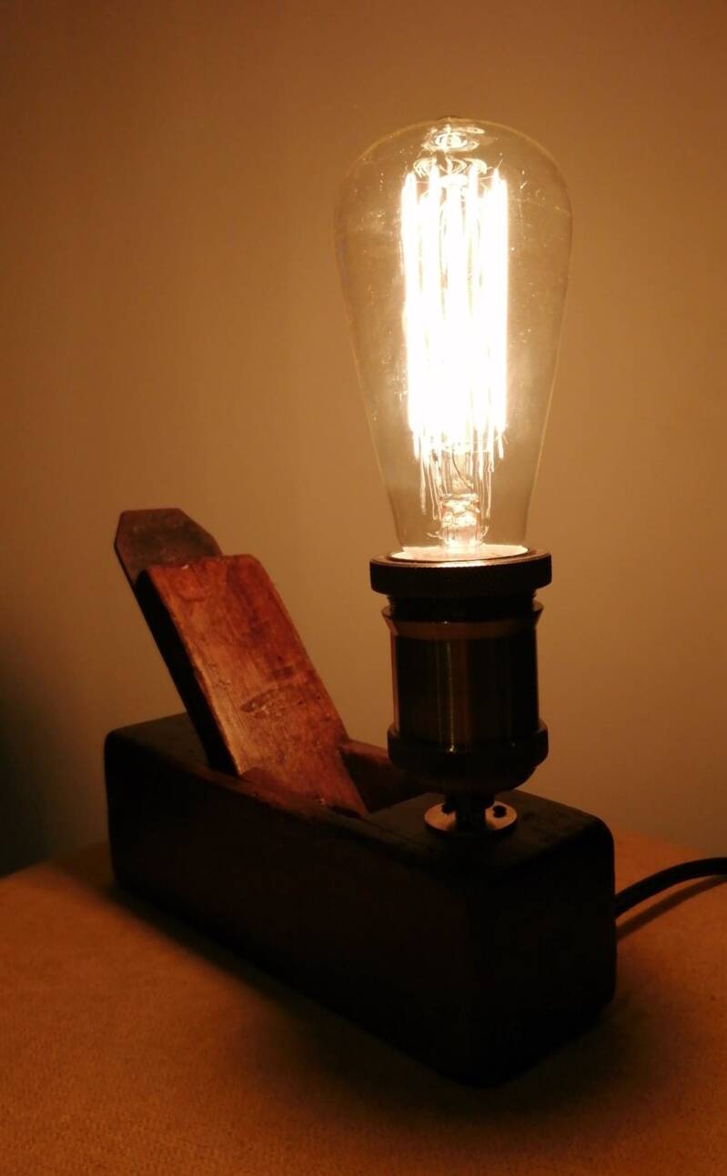 Lamp gemaakt van een oude houtschaaf, een eyecatcher in elk interieur :
