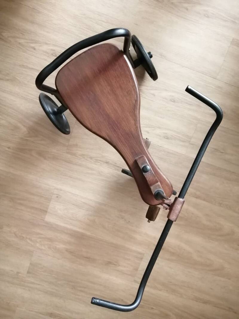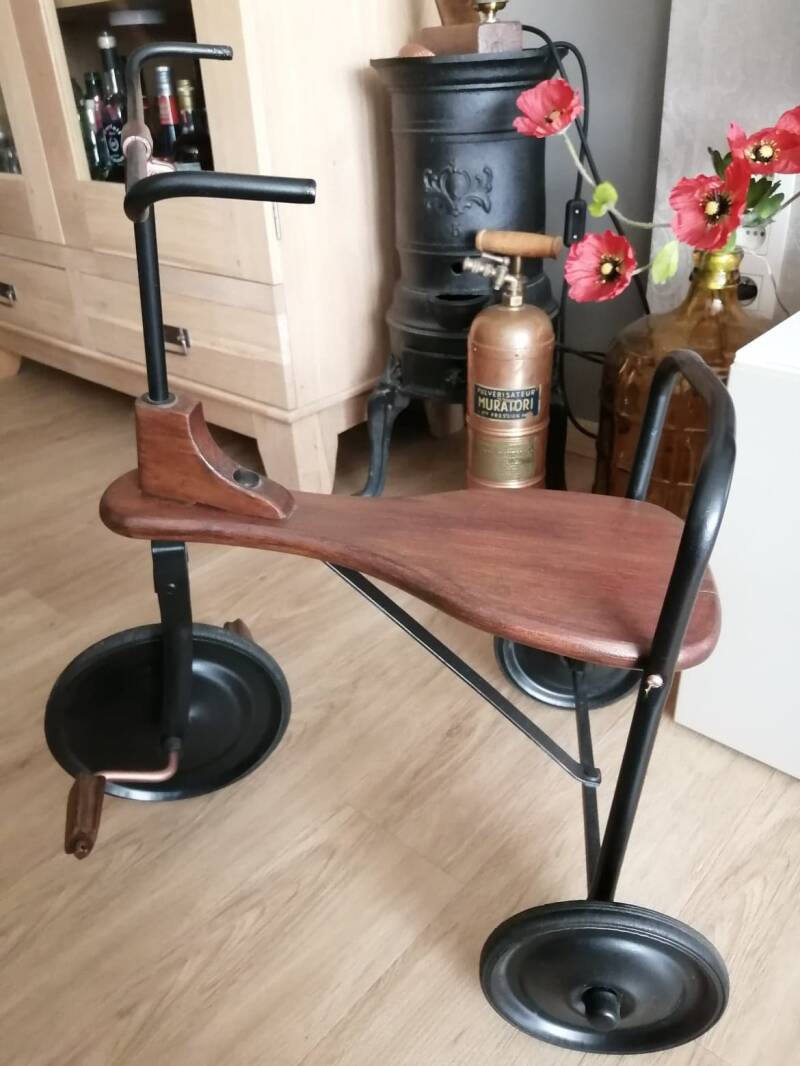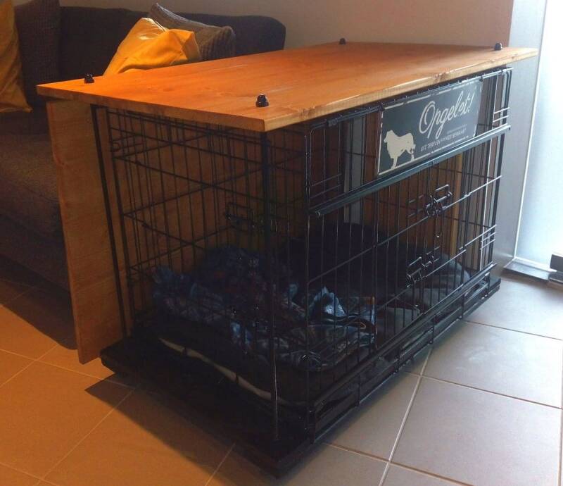 Bench op wielen, kan als bijzettafel gebruikt worden. Leuke manier om de hondenbench te integreren in je interieur