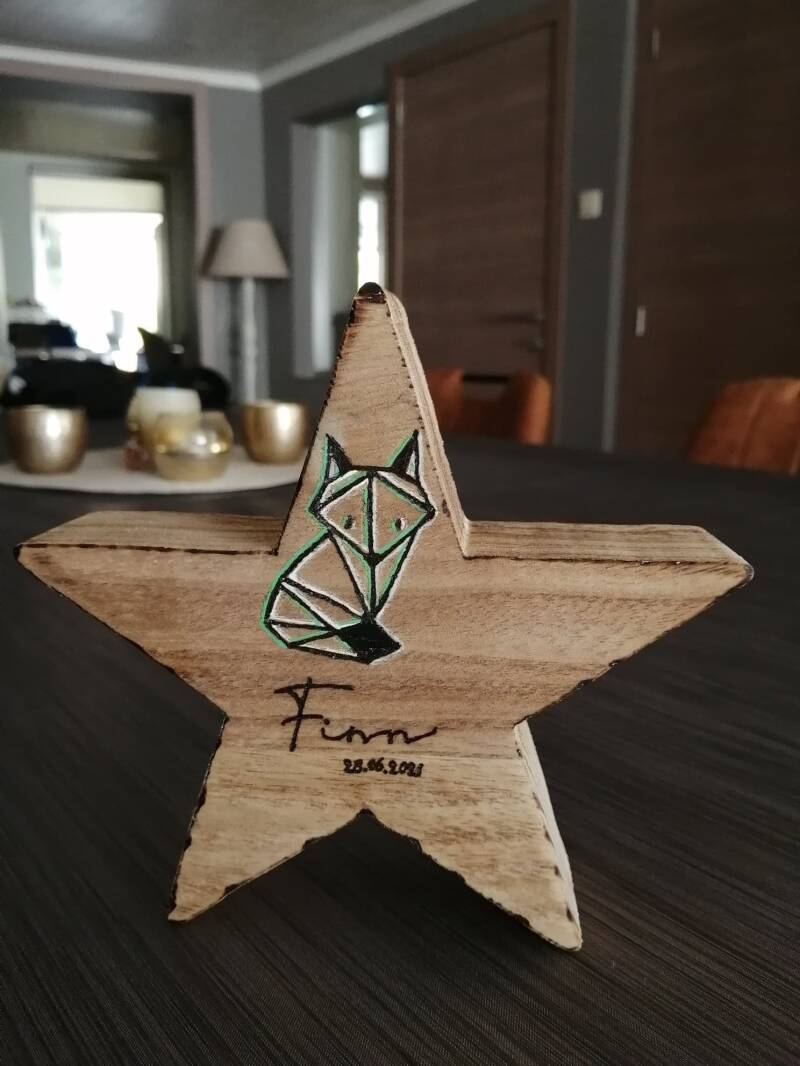 Op zoek naar een gepersonaliseerd cadeau, alles is bespreekbaar. Wij beschikken over een laserbrander die uw ontwerp in JPEG kan overbrengen op hout, leder, kurk... Maar voor een uniek stuk, kan ook met de hand gewerkt worden, zoals de voorbeeldjes onderaan.